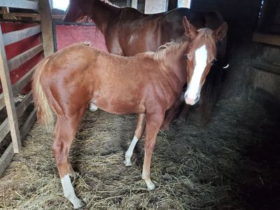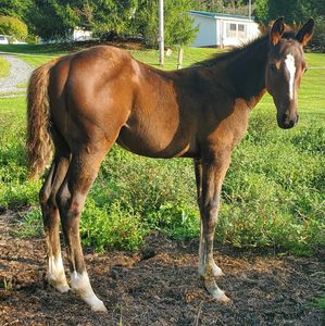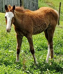 This filly is built like a tank, has splashes of color and roaning like her mom.
